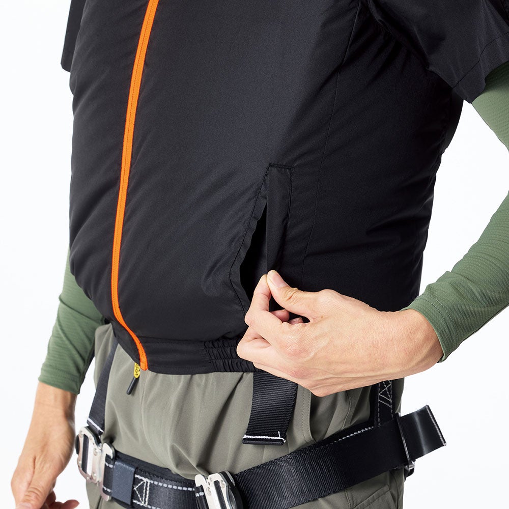 他の画像を見る EFウェア 半袖 ビッグボーン 空調風神服 ベスト(ファン無し)ハイポジション フルハーネス対応 2026年モデル EBA5158 作業着 作業服 春夏 電動ファン 扇風機 猛暑 酷暑 熱中症対策 シンプル ベーシック 現場 外仕事 農作業 奉仕作業 アウトドア フィッシング バーベキュー 特別価格 ¥ 5,940 税込 全面裏チタン加工でUVカット・遮熱効果の暑熱対応ウェア大型の収納ポケットや便利なDイング付きでワーキングはもちろんアウトドアやフィッシングなどの様々なシーンに対応可能なモデル ●左右の大型収納ポケットが幅広いワークシーンに対応●裏チタン加工が紫外線、赤外線を大幅にカットし衣服内温度の上昇を抑える●風が衿周り全体から抜けるノーマルカラー仕様●便利なDリング付き 在庫切れ 詳細を見る お気に入りに登録する