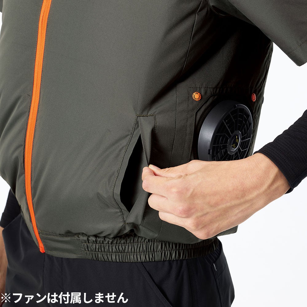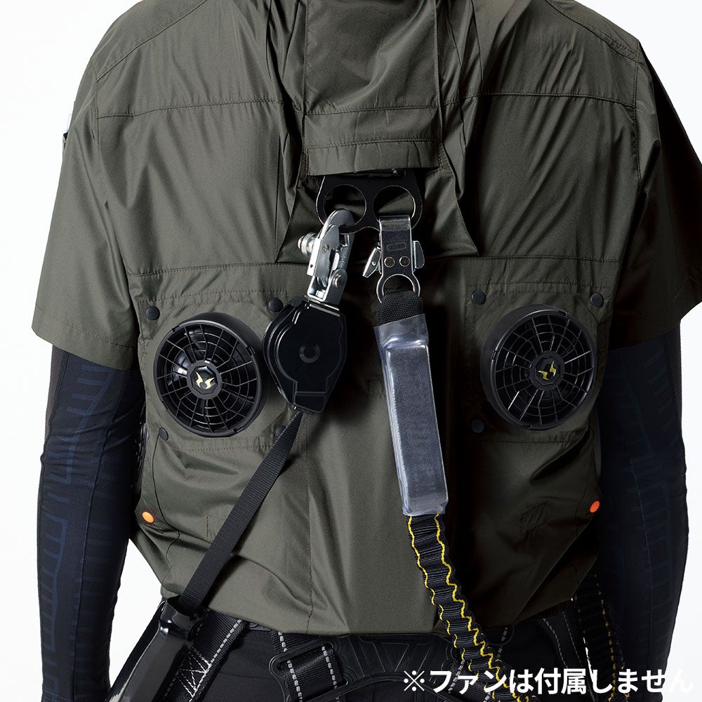 他の画像を見る EFウェア 半袖 ビッグボーン 空調風神服 半袖ジャケット(ファン無し)2026年モデル EBA5148 作業着 作業服 春夏 電動ファン 扇風機 ハイポジション 背中上部 フルハーネス対応 ランヤード取出し口 高所作業 猛暑 酷暑 熱中症対策 サイズ展開 S~5L 男女兼用 シンプル ベーシック 会社 企業 倉庫 工場 ユニフォーム 制服 特別価格 ¥ 5,940 税込 背中から全体に風が巡り、首と脇下から風が抜ける!フルハーネスや腰回りの道具に干渉しにくいファン設計 ●ファンの位置を背中に設置したハイポジションファン仕様●背中から全体に風が巡り、首と脇下から風が抜ける!フルハーネスや腰回りの道具に干渉しにくい●ランヤード取出し口、フックハンガー用ループ付きでフルハーネスに対応●裏チタン加工が紫外線、赤外線を大幅にカットし衣服内温度の上昇を抑える●背中の3D風気路メッシュ仕様で首裏へダイレクトに空気が流れる●左胸ポケットに野帳やスマートフォンが入るインナーポケット 在庫切れ 詳細を見る お気に入りに登録する