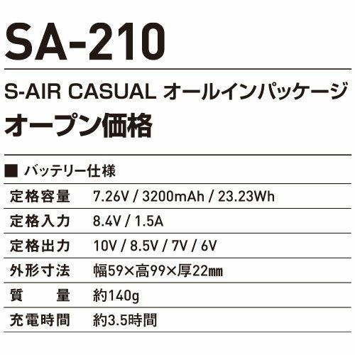他の画像を見る EFウェア ベスト シンメン S-AIR CASUAL オールインパッケージ SA210 作業着 作業服 春夏 電動ファン 扇風機 涼しい 快適 猛暑 酷暑 熱中症対策 業服 工事 土木 土建 建設 運輸 輸送 工場 倉庫 農作業 スポーツ観戦 アウトドア 外作業 炎天下 特別価格 ¥ 11,647 税込 〜 特別価格 ¥ 税込 小型バッテリー付きデバイスセットとデイリーユースにも使いやすいスポーティスタイルの軽量ベストを1つの箱にまとめだ誰でも手軽に使いやすいエントリーフルパッケージ 在庫切れ 詳細を見る お気に入りに登録する