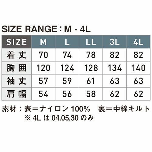 全体に中綿が入ってあったか!裏コーティングタフタで風を通さない! 全体中綿入りで保温性に優れています。裏コーティングタフタを素材としており、冷たい風を通さない防風性も備えており、寒い屋外作業にももってこいです。