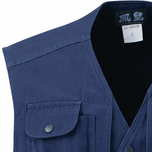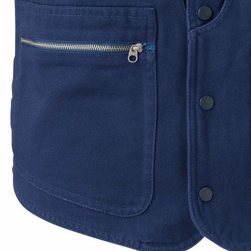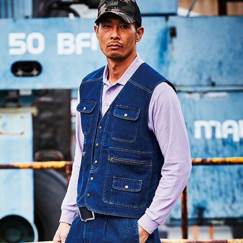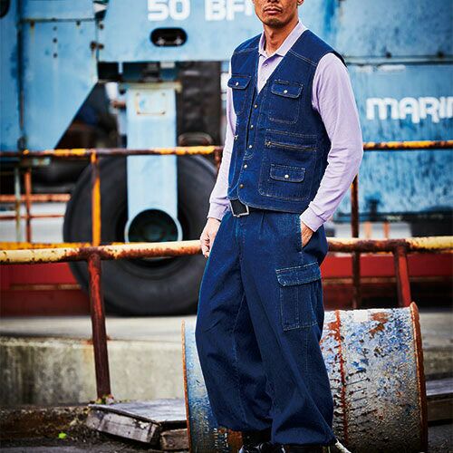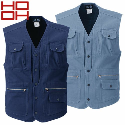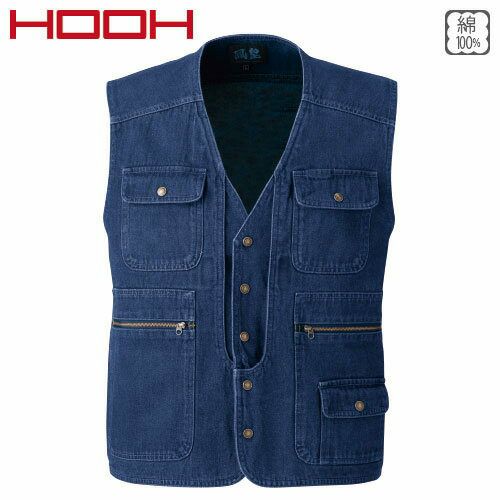 作業服 綿100% ベスト 村上被服 鳳皇 HOOH 1459 作業着 通年 秋冬 メンズ 厚手 袖なし 上着 火に強い おしゃれ かっこいい 50代 デニム ブルー 人気 企業 法人 ワーク 作業 工場 外作業 ワークユニフォーム 仕事 土木 工事 現場