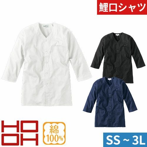 お祭り用品 鯉口シャツ 綿100 祭り 白 黒 七分袖 鳶服 上着 シャツ 無地 シンプル 村上被服 鳳皇 HOOH お祭り 秋祭り 例大祭 神輿 衣装 大人 男 縁日 出店 おみこし 粋 和 3300 作業服 通年 大きいサイズ