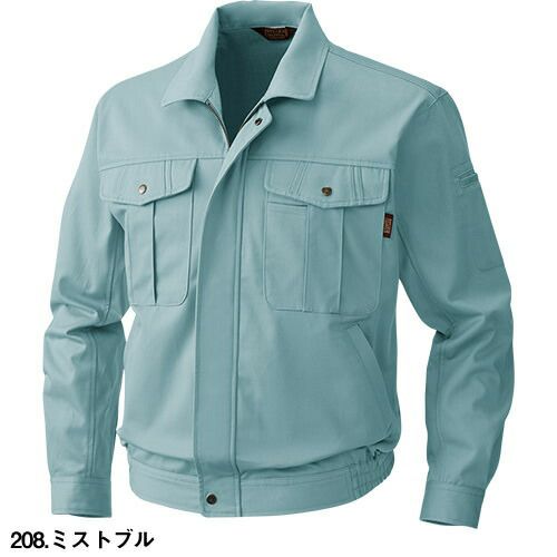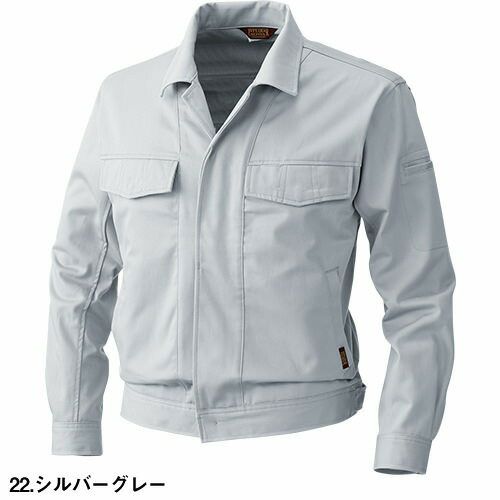 普遍的なシルエットのロングセラー商品!防縮、防シワ加工の綿100%素材を使用した定番作業服!! ・肌触りが良く吸湿性のある綿100%素材・火を扱う現場にも対応した仕様・サンフォライズ加工により生地の縮みを軽減