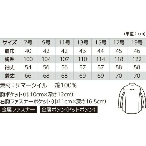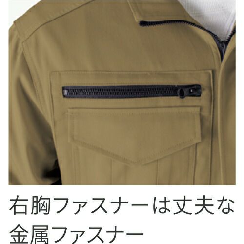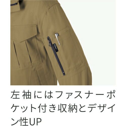 胸ポケットの金属ファスナーが表面に出ていないツナギ服 小物落下を防ぐファスナー付き両胸ポケットと、金属ファスナーによる傷付けを防止するフラップとの両立を図った安心設計生地は肌に優しい天然繊維のコットン100%を採用肉厚素材のためハードな作業にも対応できる最新モデル