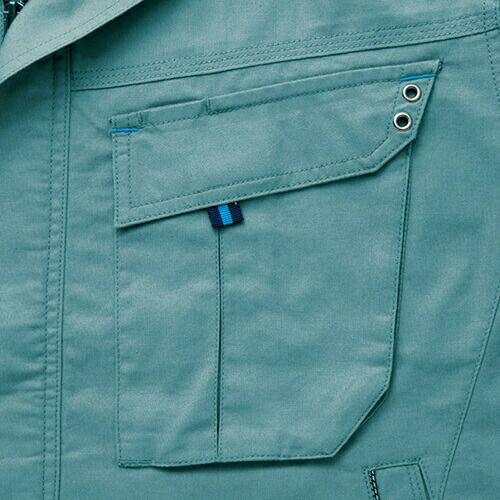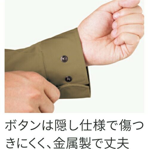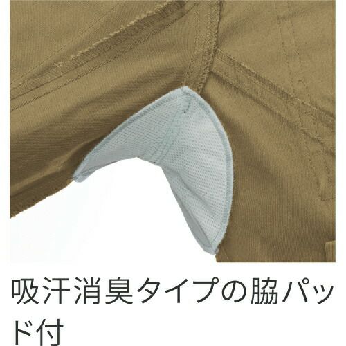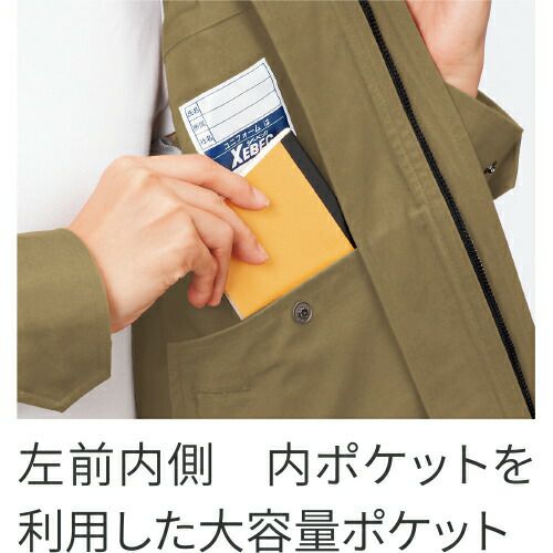 レディースタイプもある現場や火に強い綿100%タイプのシリーズ 付属はすべて丈夫な金属製。ボタンは隠し仕様で物を傷つけにくく、火を扱う現場にも対応。ファスナーポケットや逆玉脇ポケットなど収納がたっぷりなシリーズ