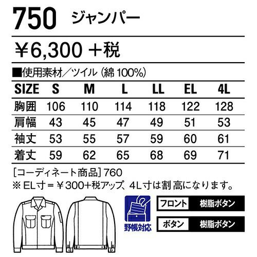 自重堂 TomoeSAKURA 作業服 750 ジャンパー 秋冬 メンズ 作業着 ワークウエア 通年 ブルゾン 上着 おしゃれ かっこいい 人気 企業 法人 ワーク 作業 工場 外作業 ワークユニフォーム 仕事 土木 工事 現場
