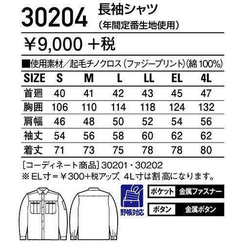 自重堂 DESK-WJ 作業服 30204 長袖シャツ 秋冬 メンズ 作業着 長袖 ワークウエア 通年 ワークシャツ