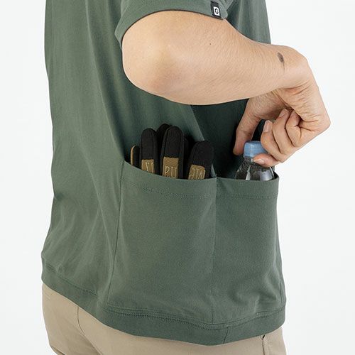 収納性抜群!5ポケットTシャツ 身生地は着ごこちのよいコットン100%。適度にゆったりとしたシルエットで必要なものがすっきり収まる5ポケット付き。ワークとカジュアルの垣根を超えたオールラウンドなTシャツ。
