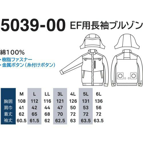 EFウェア ビッグボーン 空調風神服長袖ジャケット(ファン無し) BK6297 作業着 作業服 春夏 電動ファン対応 扇風機 猛暑 酷暑 熱中症対策 涼しい外作業 工事 土木 炎天下 建設 アウトドア イベント フェス スポーツ観戦 通勤 通学 農業 草刈り 警備