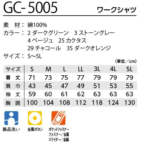 作業服 長袖シャツ タカヤ商事 TAKAYA グランシスコ ワークシャツ GC-5005 作業着 春夏作業着 作業服 長袖シャツ 春夏