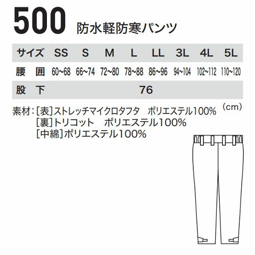 他の画像を見る 作業服 パンツ スラックス ジーベック XEBEC 防水軽防寒パンツ 500 作業着 通年 秋冬 男女兼用 ユニセックス メンズ レディース 温かい 軽い 撥水 雨対策 防水 ストレッチ 長ズボン 黒 ブラック 裏起毛 保温 スポーティ かっこいい 屋外 釣り 特別価格 ¥ 6,220 税込 〜 特別価格 ¥ 税込 伸びる!軽い!暖かい!マルチに活躍する防水軽防寒 透湿防水性、撥水性、保温性、ストレッチ性などアウトドアでも活躍する様々な機能を備えた高スペック軽防寒。高い防水性能に加え、止水ファスナーや目張りテープで雨水の侵入しにくい仕様です。 詳細を見る お気に入りに登録する