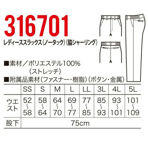 他の画像を見る 作業服 レディース パンツ 大川被服 kansai uniform SOFT WORK カンサイユニフォームソフトワーク KS-255 スラックス(レディース)(脇ゴム入り) 02555 作業着 通年 秋冬 レディースパンツ 特別価格 ¥ 5,450 税込 〜 特別価格 ¥ 税込 ヒップを包み込む安定感のあるシルエットは、着用ストレスのない、絵になる黒パン。 山本寛斎がプロデュースしたシックな黒パンツシリーズは、トップスに何を合わせても絵になる商品スラリと伸びたシルエットの美しさだけではなく、お尻を包み込むような安定感のあるフォルムは美尻効果もあり、年齢を問わず、誰でも安心して着用いただけますストレッチの効いた素材と深めの股上は履きやすさも抜群着用ストレスのない快適パンツだから、仕事の効率も高めてくれます〔クラレトレーディング 日本製素材使用〕 詳細を見る お気に入りに登録する
