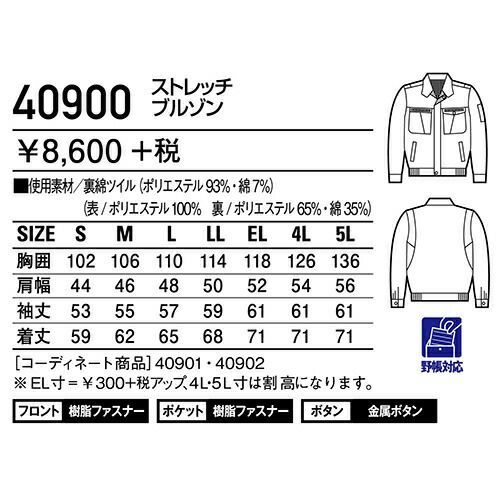他の画像を見る 自重堂 作業服 40900 ブルゾン 秋冬 メンズ 作業着 ワークウエア 通年 上着 おしゃれ かっこいい 人気 企業 法人 ワーク 作業 工場 外作業 ワークユニフォーム 仕事 土木 工事 現場 特別価格 ¥ 5,181 税込 〜 特別価格 ¥ 税込 抜群の動きやすさとしなやかな着心地を実現。 「ストレッチ裏綿」仕様で着心地とストレッチ性を高め、ワーカーの満足度に応える 人気のアイテム。 詳細を見る お気に入りに登録する