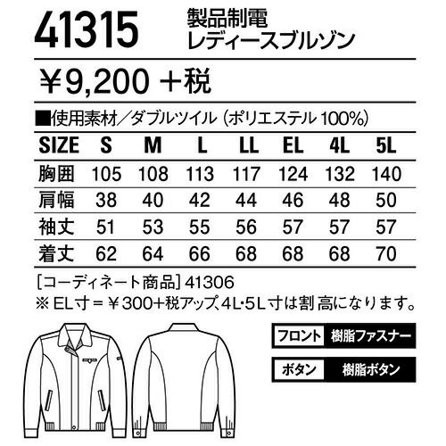 他の画像を見る 自重堂 作業服 41315 レディースブルゾン 秋冬 レディース 作業着 女性用 ワークウエア 通年 レディース上着 女性用作業着 おしゃれ かっこいい 企業 法人 ワーク 作業 ワークユニフォーム ワークウェア ユニフォーム 仕事 土木 工事 特別価格 ¥ 6,270 税込 〜 特別価格 ¥ 税込 ワークスタイルの着こなしのキーカラーは何色ですか? ゆるやかなドレープが美しさを際立たせる「ダブルツイル」。 さまざまなワークシーンに、上品で高級感のあるペアコーディネート対応シリーズ。 多彩なアイテムからお選びください。 詳細を見る お気に入りに登録する