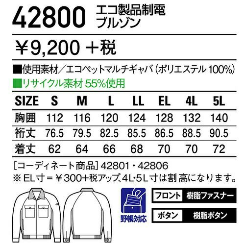 他の画像を見る 自重堂 作業服 41900 ブルゾン 秋冬 ユニセックス メンズ・レディース対応 作業着 ワークウエア 通年 上着 おしゃれ かっこいい 人気 企業 法人 ワーク 作業 工場 外作業 ワークユニフォーム 仕事 土木 工事 現場 特別価格 ¥ 6,028 税込 〜 特別価格 ¥ 税込 ワークシーンを際立たせる洗練されたデザイン。 環境に優しい再生PET「ユニエコロ」を使用。 上質で上品な光沢としなやかな風合いを併せもち、多くのワーカーから定評を得ているペアコーディネート商品です。 詳細を見る お気に入りに登録する
