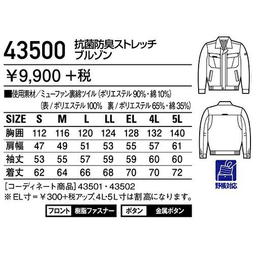 他の画像を見る 自重堂 Field Message 作業服 43500 ブルゾン 秋冬 メンズ 作業着 ワークウエア 通年 上着 おしゃれ かっこいい 人気 企業 法人 ワーク 作業 工場 外作業 ワークユニフォーム 仕事 土木 工事 現場 特別価格 ¥ 6,061 税込 〜 特別価格 ¥ 税込 銀を纏いスタイリッシュに着こなす。 裏綿に純銀糸「ミューファン」を使用。温かくふんわりとした着心地です。 詳細を見る お気に入りに登録する
