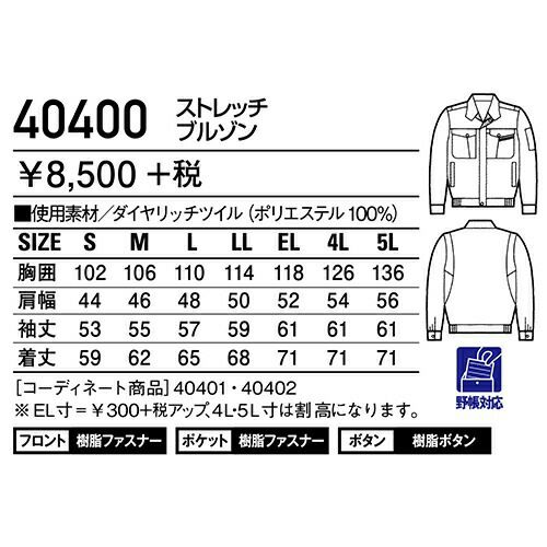 他の画像を見る 自重堂 作業服 40400 ブルゾン 秋冬 メンズ 作業着 ワークウエア 通年 上着 おしゃれ かっこいい 人気 企業 法人 ワーク 作業 工場 外作業 ワークユニフォーム 仕事 土木 工事 現場 特別価格 ¥ 5,170 税込 〜 特別価格 ¥ 税込 美しいフォルムで彩られた気品溢れるワーキングウエア。 詳細を見る お気に入りに登録する