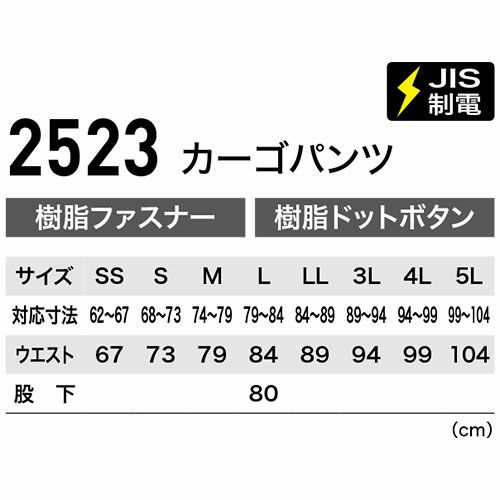 他の画像を見る 作業服 カーゴパンツ クロダルマ カーゴパンツ(ノータック) 35683 作業着 通年 秋冬 制電 ストレッチ 男女兼用 シンプル リーズナブル サイズ豊富 特別価格 ¥ 2,541 税込 〜 特別価格 ¥ 税込 低価格&高品質、着る人の悩みを解決する作業服 横ストレッチ、パンツはバックシャーリング仕様で着用時のストレスを軽減静電気対策も施された静電糸入り男女ユニセックス仕様のサイズ展開様々な特徴もありつつ低価格での提供を可能にしています。 詳細を見る お気に入りに登録する