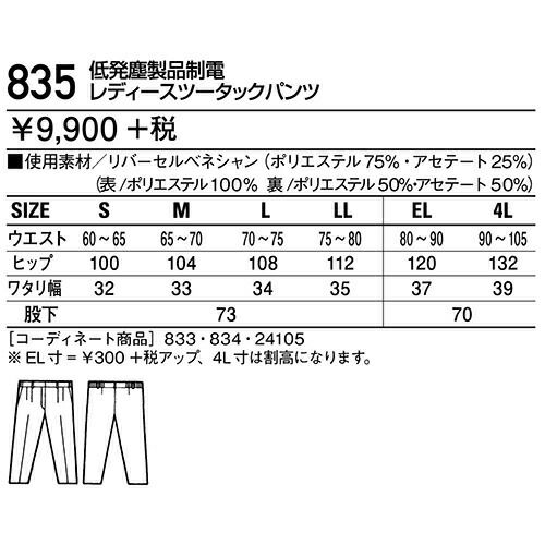 他の画像を見る 自重堂 DESK 作業服 835 ツータックパンツ 秋冬 レディース 作業着 ボトムス ワークウエア 通年 レディースパンツ 特別価格 ¥ 6,534 税込 〜 特別価格 ¥ 税込 チリやホコリを嫌うデリケートワークを支える低発塵ユニフォーム。 シンプルなデザインに秘めた上質の二重織り素材「リバーセルTM」。 チリやホコリの原因になる毛羽発生を抑え、JIS規格の帯電防止基準をクリア、ウオッシュ&ケアにも優れ、ハード&ソフトワークの必須ペアコーディネートアイテムです。 詳細を見る お気に入りに登録する