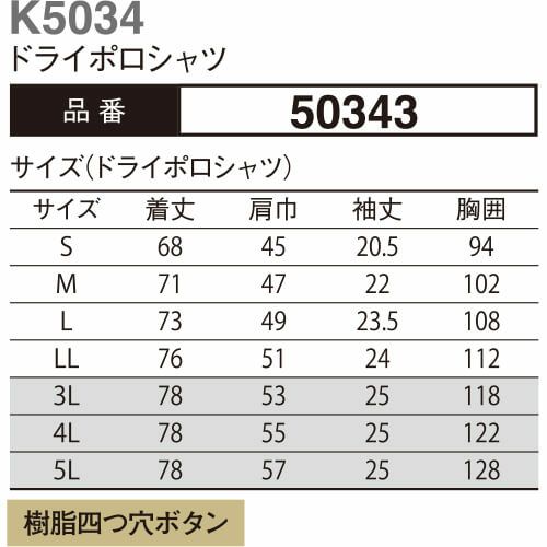 他の画像を見る 作業服 ポロシャツ 半袖 大川被服 kansai uniform SOFT WORK カンサイユニフォームソフトワーク K5034 ドライポロシャツ 50343 作業着 春夏 特別価格 ¥ 3,110 税込 〜 特別価格 ¥ 税込 カジュアルな印象のワッフル素材は、汗でもベトつかず、快適な着心地。 素材の表面がワッフル状に凹凸しているため、カジュアルな印象ですまた、凹凸面が肌に点接触しているので汗をかいてもベトつかず、サラッとした着心地を実現しかも、吸汗速乾性にすぐれたポリエステル100%の素材だから、形態安定にも優れています 詳細を見る お気に入りに登録する