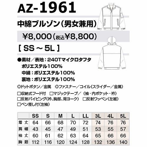他の画像を見る 作業服 ブルゾン 作業着 ジャケット 中綿 温かい ジャンパー 上着 長袖 通年 秋冬 アイトス AITOZ AZ-1961 おしゃれ かっこいい ユニフォーム 仕事 工事 現場 大きいサイズ 4L 5L 6L 秋冬 メンズ レディース 男女兼用 防寒着 防寒ジャケット 特別価格 ¥ 6,780 税込 〜 特別価格 ¥ 税込 詳細を見る お気に入りに登録する