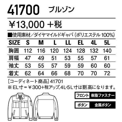 他の画像を見る 自重堂 作業服 41700 ブルゾン 秋冬 メンズ 作業着 ワークウエア 通年 上着 おしゃれ かっこいい 人気 企業 法人 ワーク 作業 工場 外作業 ワークユニフォーム 仕事 土木 工事 現場 特別価格 ¥ 8,151 税込 〜 特別価格 ¥ 税込 オーナーのプライドをくすぐる、この品格。 ハイグレード素材「ダイヤマイルドTM」ならではのパウダータッチの感触。 ハイオーナー感覚で着るワンランク上のブルゾンです。 詳細を見る お気に入りに登録する