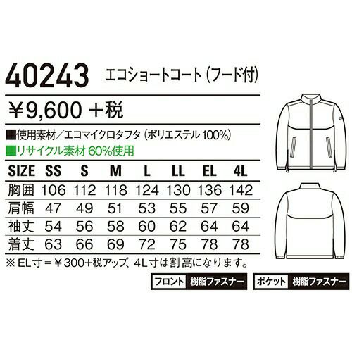 他の画像を見る 自重堂 Field Message 作業服 40243 ショートコート 秋冬 ユニセックス メンズ・レディース対応 作業着 通年 ブルゾン おしゃれ かっこいい 人気 ワーク企業 法人 作業 工場 外作業 特別価格 ¥ 6,116 税込 〜 特別価格 ¥ 税込 サービス業、軽作業にぴったりの商品 詳細を見る お気に入りに登録する