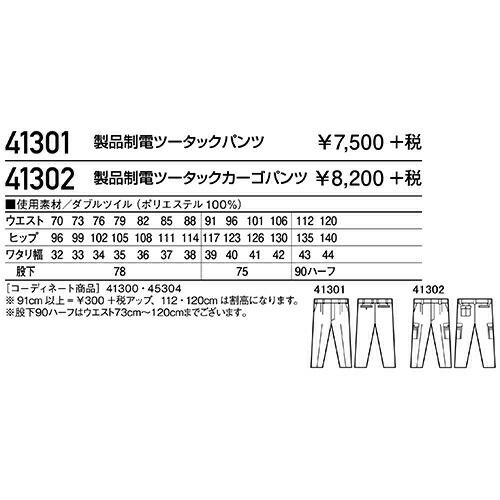 他の画像を見る 自重堂 作業服 40601 ツータックパンツ 秋冬 メンズ 作業着 腿ポケット無 ボトムス ワークウエア 通年 スラックス 作業ズボン 作業パンツ ワークパンツ ズボン おしゃれ かっこいい オフィス ユニホーム 作業 軽作業 外作業 工場 現場 特別価格 ¥ 4,983 税込 〜 特別価格 ¥ 税込 裏ウールだから感じる、やわらかな着心地。 快適に働ける裏ウール使用。二重織りギャバのもつ独自のふくらみやハリとコシの感覚が多くのワーカーからの支持を集めています。 詳細を見る お気に入りに登録する