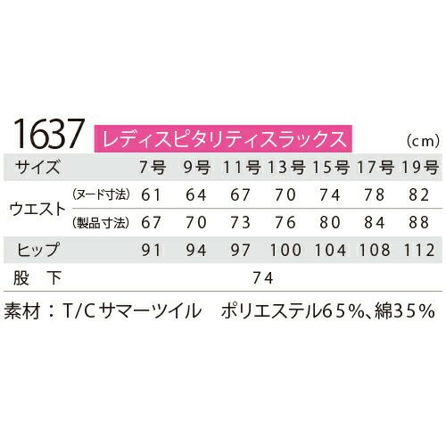 7. ジーベック 1637 レディスピタリティスラックス 春夏用 作業服 女性用 婦人用 作業着 作業パンツ パンツ スラックス レディースパンツ 定番