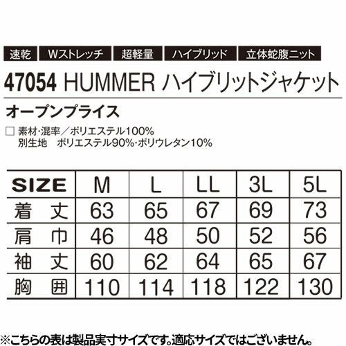 他の画像を見る 作業服 ブルゾン HUMMER ハマー ハイブリッドジャケット 47054 作業着 通年 秋冬 アウトドア スポーツ ジョギング ウォーキング トレーニング 登山 キャンプ トレッキング タウンユース ストレッチ 動きやすい 特別価格 ¥ 5,823 税込 〜 特別価格 ¥ 税込 軽量×ダブルストレッチ蛇腹状のニット生地が織りなす新感覚3DワークウェアがHUMMERから登場長時間作業も快適にこなせる高機能モデル 詳細を見る お気に入りに登録する