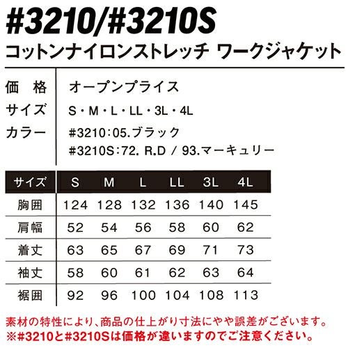 他の画像を見る [即日発送]アイズフロンティア ジャケット 長袖 2025年 春夏 新作 作業服 コットンナイロンストレッチ ワークジャケット #3210 I'Z FRONTIER 作業着 ブルゾン ストレッチ 高耐久 かっこいい おしゃれ 仕事着 大きいサイズ 3L 4L 人気 ワークウェア 特別価格 ¥ 7,348 税込 高品質な綿ナイロン素材が、ハイブランドと同等の高級感を醸し出すラグジュアリーモデル ●高品質な綿ナイロン素材を使用。ハイブランドウェアと同等の高級感があります●伸長率ヨコ方向約20%、伸長回復率(1時間後)約86%の超ストレッチ素材で動きやすい●引裂きや摩擦に強い素材で、ハードワークの方にもおすすめ●屈強なイメージのボンバーシルエットに、ライダーステイストをプラスした脇側ビッグポケットを採用。ワイルド惑とリッチ惑を両立させた唯一無二のデザイン●高級惑溢れる光沢惑のジャケットフロントファスナー、近未来惑を表現する止水タイプポケットファスナー、国産YKK社製を使用したタックボタン等、細部までこだわり抜いた1枚 詳細を見る お気に入りに登録する