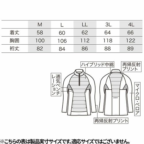 他の画像を見る EFウェア 作業服 Z-DRAGON 空調服(R) 長袖ブルゾン(ファン無し)2025年モデル 74330 作業着 作業服 春夏 フルハーネス対応 サイドファン 電動ファン対応 扇風機 猛暑 酷暑 熱中症対策 涼しい フックハンガー ランヤード 車 トラック 重機 フォークリフト 運転 特別価格 ¥ 3,655 税込 〜 特別価格 ¥ 税込 鮮やかなレッドが目を引くフルハーネス完全対応の本格ワークスペックシリーズサイドファンを採用し様々なワークシーンにおいてパフォーマンスを向上させる ●車・重機の運転や椅子に座った時にファンが邪魔になりにくいサイドファンタイプ●撥水性とUVカット性に優れた高密度タフタ●裏チタンコーティングを施しUVカット、-10℃の遮熱効果を確保(未加工布比較)●フックハンガー、ランヤード取出し口を配備しフルハーネスに完全対応●ファン脱落を防止するメッシュポケットを配備●背中に保冷剤用メッシュポケット対き 詳細を見る お気に入りに登録する