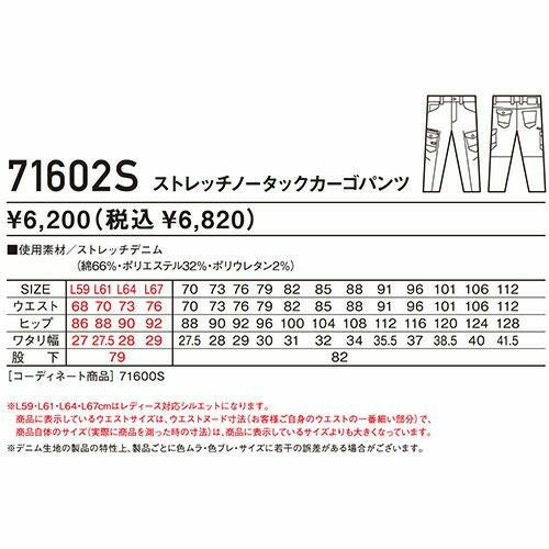 他の画像を見る 作業服 デニム 自重堂 Z-DRAGON ストレッチノータックカーゴパンツ 71602S 作業着 通年 秋冬 ストレッチ デニム カッコいい 女性対応 細身 スリム デニムパンツ デニム 作業ズボン 作業パンツ パンツ ワーク ワークウェア ワークパンツ 特別価格 ¥ 3,531 税込 〜 特別価格 ¥ 税込 伸縮性に優れたストレッチデニム素材 カモフラプリントを施しデザイン性を追求したハイブリッドモデル71600シリーズのスリムシルエットVer. 女性対応シルエットも追加 詳細を見る お気に入りに登録する