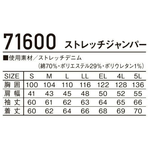 他の画像を見る 作業服 デニム 自重堂 Z-DRAGON ストレッチジャンパー 71600S 作業着 通年 秋冬 ストレッチ デニム カッコいい 女性対応 細身 スリム 上着 デニム作業服 デニム作業着 ブルゾン ジャケット ワークウェア 仕事 土木 工事 現場 特別価格 ¥ 4,521 税込 〜 特別価格 ¥ 税込 伸縮性に優れたストレッチデニム素材 カモフラプリントを施しデザイン性を追求したハイブリッドモデル71600シリーズのスリムシルエットVer. 女性対応シルエットも追加 詳細を見る お気に入りに登録する