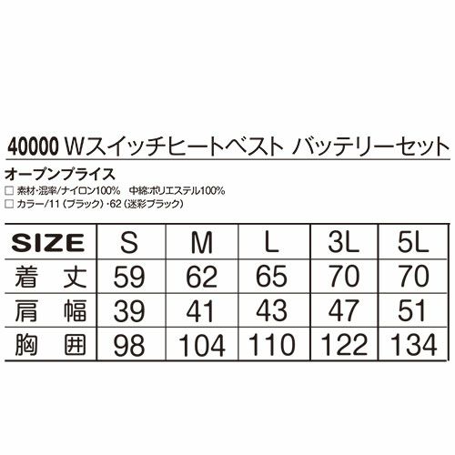 他の画像を見る 電熱ベスト バッテリー付き ヒートベスト【バッテリーセット】 USB Type-C 作業着 作業服 防寒 電熱 ベスト ベスト ヒーターベスト ヒーター ヒート アウトドア ゴルフ 釣り ギフト 20秒でぽっかぽか 40000 特別価格 ¥ 9,933 税込 〜 特別価格 ¥ 税込 スイッチ付けて20秒でぽっかぽか。ベストとバッテリーのフルセットです! 前後切り替えWスイッチ×調整温度3段階でいつでもどこでもヒートコントロールが思いのまま。 詳細を見る お気に入りに登録する