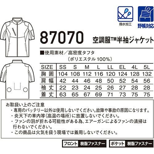 他の画像を見る 空調服 半袖 自重堂 空調服半袖ジャケット服のみ 87070 作業着 作業服 春夏 メンズ 涼しい 快適 猛暑対策 熱中症対策 上着 ブルゾン 扇風機作業服 工事 土木 土建 建設 外作業 炎天下 特別価格 ¥ 4,411 税込 〜 特別価格 ¥ 税込 スポーツテイスト空調服 ポリエステル100%半袖ジャケットタイプ 豊富なカラー展開で仕事着だけでなく、アウトドアやスポーツ観戦にも着用できる一着。 詳細を見る お気に入りに登録する