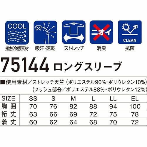 他の画像を見る ゆうパケット対応 290円 夏用インナー メンズ 自重堂 Z-DRAGON 長袖シャツ 75144 ロングスリーブ メッシュ 春夏 暑さ対策 涼しい 吸汗 速乾 冷感 抗菌 防臭 涼しい スポーティ 作業着 作業服 人気 激安 お徳 快適 特別価格 ¥ 1,200 税込 〜 特別価格 ¥ 税込 夏場に最適な接触冷感素材 メッシュ使いで通気性が高く、吸汗速乾、消臭&抗菌の機能も持ち合わせたハイパフォーマンスインナー 詳細を見る お気に入りに登録する