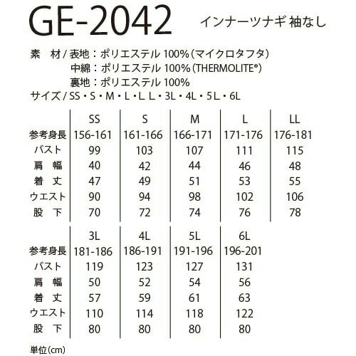 他の画像を見る エスケープロダクト 袖なしインナーつなぎ 防寒つなぎ ツナギ オーバーオール サロペット パンツ 保温 人気 安い 防寒着 おしゃれ 暖かい 秋冬用 最強 かっこいい 防寒 作業着 おすすめ ワーク マン メンズ 極寒 寒冷地 配送 土方 工事 室内 自転車 スポーツ GE-2042 特別価格 ¥ 5,330 税込 〜 特別価格 ¥ 税込 軽くて薄い保温性抜群の「THERMOLITE」中綿を使用したインナー防寒ツナギ 随所に設けた伸縮性のニットが体の動きに合わせてスムースにサポート。トイレに便利な腰割れファスナーを搭載 詳細を見る お気に入りに登録する