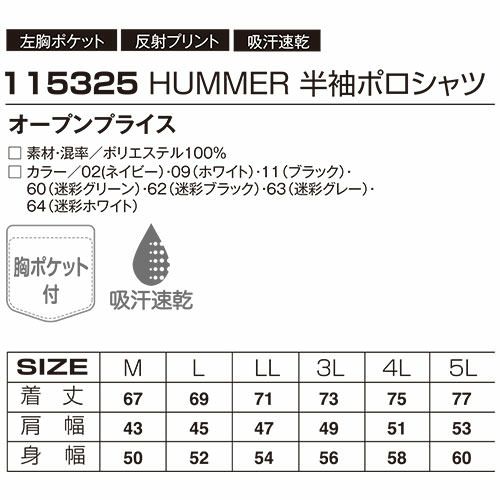 他の画像を見る 作業服 ポロシャツ 半袖 HUMMER ハマー 半袖ポロシャツ 1153-25 作業着 春夏 特別価格 ¥ 1,628 税込 HUMMERLIKE NOTHING ELSE 詳細を見る お気に入りに登録する