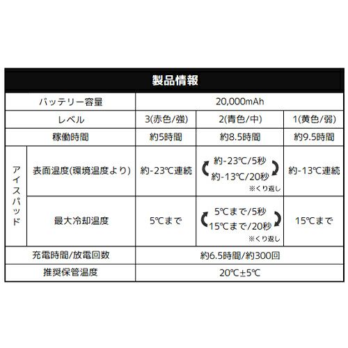 他の画像を見る ペルチェ 冷却 ベスト 桑和 SOWA ペルチェ フルセット 最新 2024年モデル 13109 作業着 作業服 夏 アイスベスト 冷蔵庫 冷たい 涼しい アウトドア 釣り キャンプ 農作業 暑さ対策 熱中症対策 ケーブル 保冷剤 バッテリー付 特別価格 ¥ 20,690 税込 〜 特別価格 ¥ 税込 ペルチェ素子を利用して冷却するアイスパッド付きベストのコンプリートセット 4つのアイスパッドで素早くクールダウン瞬時に冷却し、冷たさが持続モバイルチャージャーは1時間の充電で30%程度回復(約1時間半使用可能)1つずつ取り外しのできるアイスパッド採用で、1~4つの取り付けカスタムが可能冷感部分は非金属なので、金属アレルギーの方でも使用可能 詳細を見る お気に入りに登録する