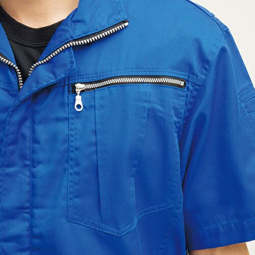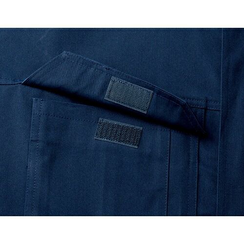 胸ポケットの金属ファスナーが表面に出ていないツナギ服 小物落下を防ぐファスナー付き両胸ポケットと、金属ファスナーによる傷付けを防止するフラップとの両立を図った安心設計生地は肌に優しい天然繊維のコットン100%を採用肉厚素材のためハードな作業にも対応できる最新モデル