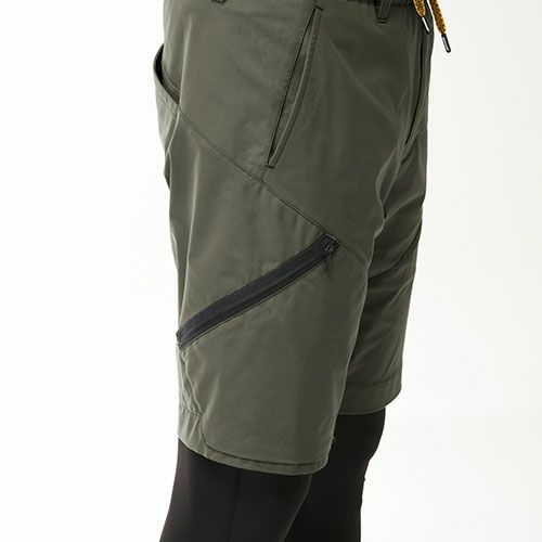 ●ポリエステル100%だが吸汗拡散に富んだ機能素材を使用●軽量で耐久性に優れる●ポリウレタンを入れたストレッチではないので経年劣化しない●左カーゴポケットフラッグにオリジナルロゴ再帰性反射プリント入り●ポケット袋布の底部は補強布を当てた二重仕立