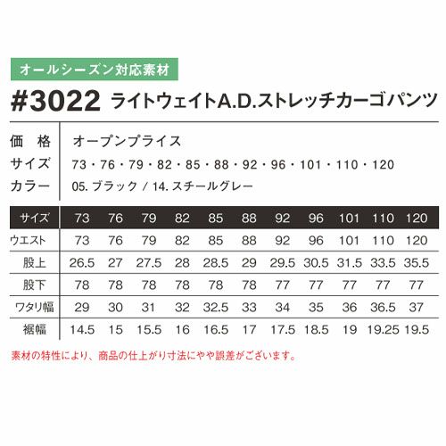 他の画像を見る 作業服 カーゴパンツ アイズフロンティア I'Z FRONTIER A.D.ジョガーパンツ #3353 作業着 通年 秋冬 寒さ対策 アウトドア スポーツ カッコいい 動きやすい 黒 ブラック ベージュ キャンプ 釣り カジュアル 20代 30代 40代 特別価格 ¥ 5,379 税込 時代に流されないレトロテイストを現代風に鮮やかにアップデート! ・ニット素材を思わせるストレスフリーの柔らかな着心地ながらも、布帛素材ならではの屈強な堅牢性を誇るアルティメットワーキング素材を採用。・高品質な二重織構造。素材表面は細番手デニール糸を高密度で織りあげることにより、独特なマット冠を表現したリッチ感の溢れる存在感を発揮。素材裏面のローロフトパイル構造によるしなやかな風合いが、極上の着心地と衣服内の適度な保温性を実現します。・伸長率縦約28%、横約16%、伸長回復率(1時間後)約90%の適度な全方向ストレッチ性能を有し、ストレスのない快適な動きやすさと、安定感のあるスタイリッシュなスタイルキープを実現します。・しなやかな素材ながらも一般基準を大きく超える引き裂き強さ(縦約22N、横約72N)を実現。抗ピリング性能などその他各項目も高い数値を測定した高堅牢性モデル。・レトロフューチャーをコンセプトとしたネオクラシックストリートモデル。時代に流されないシンプル性と現代のポップ感を融合した新感覚ワークスタイル。・ファスナーやドットボタンなど国産YKK社製を使用。細部まで品質にこだわっています。 詳細を見る お気に入りに登録する