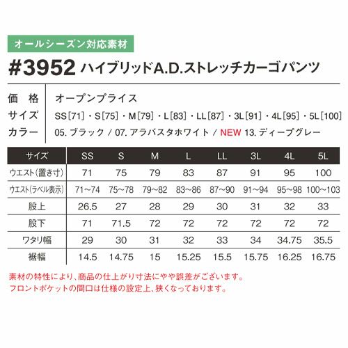 他の画像を見る 作業服 カーゴパンツ クロダルマ カーゴパンツ(ノータック) 35683 作業着 通年 秋冬 制電 ストレッチ 男女兼用 シンプル リーズナブル サイズ豊富 特別価格 ¥ 2,541 税込 〜 特別価格 ¥ 税込 低価格&高品質、着る人の悩みを解決する作業服 横ストレッチ、パンツはバックシャーリング仕様で着用時のストレスを軽減静電気対策も施された静電糸入り男女ユニセックス仕様のサイズ展開様々な特徴もありつつ低価格での提供を可能にしています。 詳細を見る お気に入りに登録する