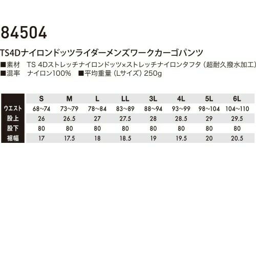 他の画像を見る 作業服 カーゴパンツ 藤和 TS Design TS4Dナイロンドッツライダーメンズワークカーゴパンツ 84504 作業着 春夏作業着 作業服 カーゴパンツ 春夏 特別価格 ¥ 4,780 税込 〜 特別価格 ¥ 税込 通気性と高強度の夏版ライダーワークウェア 詳細を見る お気に入りに登録する