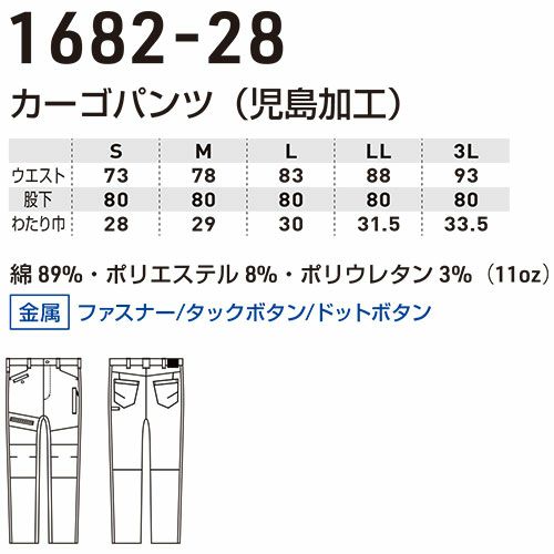 他の画像を見る 作業服 カーゴパンツ 桑和 SOWA G.GROUND カーゴパンツ 1682-28 作業着 通年 秋冬 ストレッチ 吸汗性 製品洗い 野帳ポケット おしゃれ かっこいい 人気 ズボン 作業ズボン 作業パンツ 作業 工事 土木 塗装 DIY diy 特別価格 ¥ 9,999 税込 〜 特別価格 ¥ 税込 伸長率85% の異次元ストレッチデニムの限定児島加工第2弾が登場立体ジワやハチノスが絶妙なユーズド感を演出する至高の1着 ・11ozのストレッチデニムを使用・ひざ抜けが気にならない高いキックバック性・圧倒的に動きやすい最強ストレッチ・製品洗いによるソフトな風合いと防縮性・日本の職人の手によって加工されたハイエンドモデル 詳細を見る お気に入りに登録する