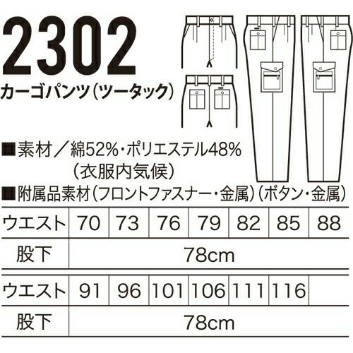 他の画像を見る クロダルマ 2302 カーゴパンツ(ツータック) 作業着 ポケット付き ボトムス ワークウエア ワークウェア 作業服(秋冬・通年) パンツ・スラックス 腿ポケット有ズボン 作業服 作業 おしゃれ かっこいい 人気 ズボン 作業ズボン 作業パンツ 作業 工事 土木 塗装 DIY diy 特別価格 ¥ 6,250 税込 〜 特別価格 ¥ 税込 詳細を見る お気に入りに登録する