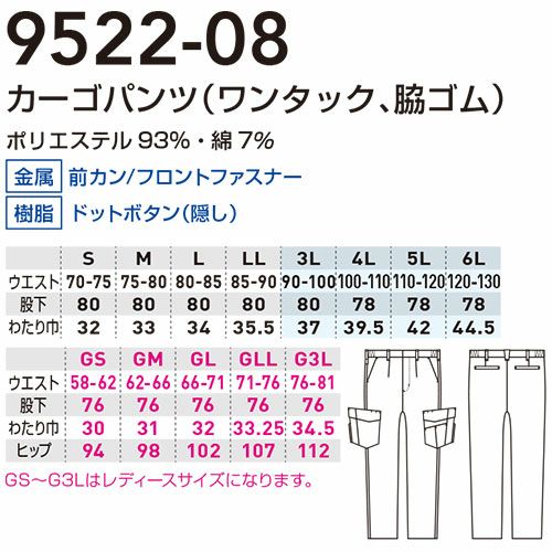 他の画像を見る 作業服 カーゴパンツ 桑和 SOWA カーゴパンツ(ノータック・脇ゴム) 9668-98 作業着 通年 秋冬 制電 ストレッチ 消臭 男女共用 野帳ポケット 反射 エコ イージーケア 特別価格 ¥ 4,449 税込 〜 特別価格 ¥ 税込 選べる豊富なカラーバリエーション!レディースサイズにも対応した裏綿作業服 ・信頼の日本製ツイル裏綿生地を使用・JIS T8118規格適合の制電性商品・不快なニオイを軽減するデオドラントテープ付き・窮屈感を感じさせない適度なストレッチ性・生地裏側が綿タッチで肌触りが良い・レディースサイズ対応商品 詳細を見る お気に入りに登録する