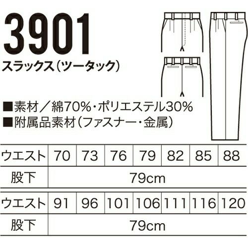 他の画像を見る クロダルマ 3901 スラックス(ツータック) VP 作業着 ボトムス ワークウエア ワークウェア 作業服(秋冬・通年) パンツ・スラックス 腿ポケット無ズボン 作業服 作業ズボン 作業パンツ ワークパンツ ズボン おしゃれ かっこいい オフィス ユニホーム 作業 軽作業 外作業 工場 現場 特別価格 ¥ 5,030 税込 〜 特別価格 ¥ 税込 詳細を見る お気に入りに登録する