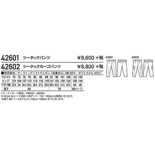 他の画像を見る 自重堂 作業服 42601 ツータックパンツ 秋冬 メンズ 作業着 腿ポケット無 ボトムス ワークウエア 通年 スラックス 作業ズボン 作業パンツ ワークパンツ ズボン おしゃれ かっこいい オフィス ユニホーム 作業 軽作業 外作業 工場 現場 特別価格 ¥ 5,566 税込 〜 特別価格 ¥ 税込 上質インド綿がしなやかなドレープ性と抜群の着心地を実現。 詳細を見る お気に入りに登録する